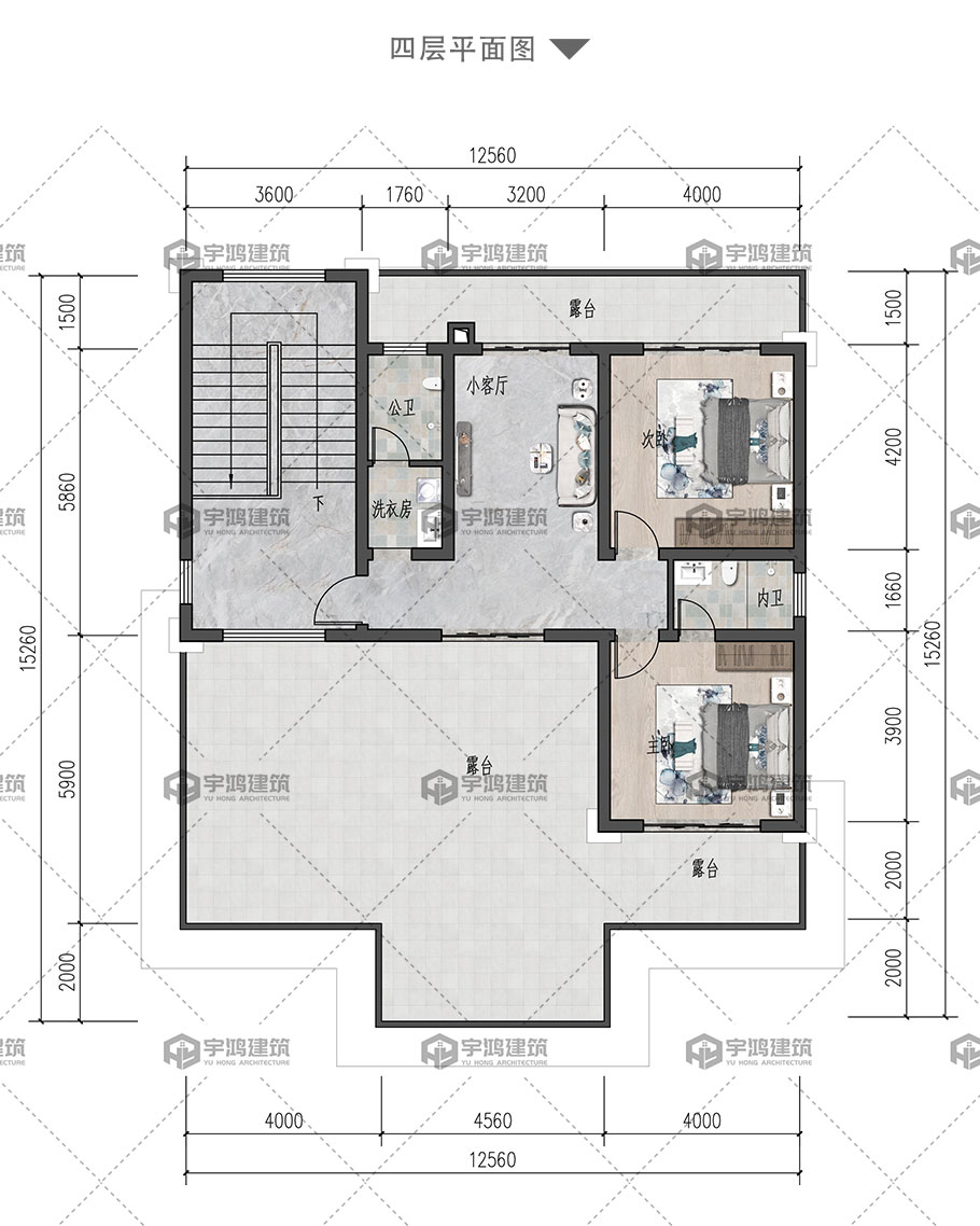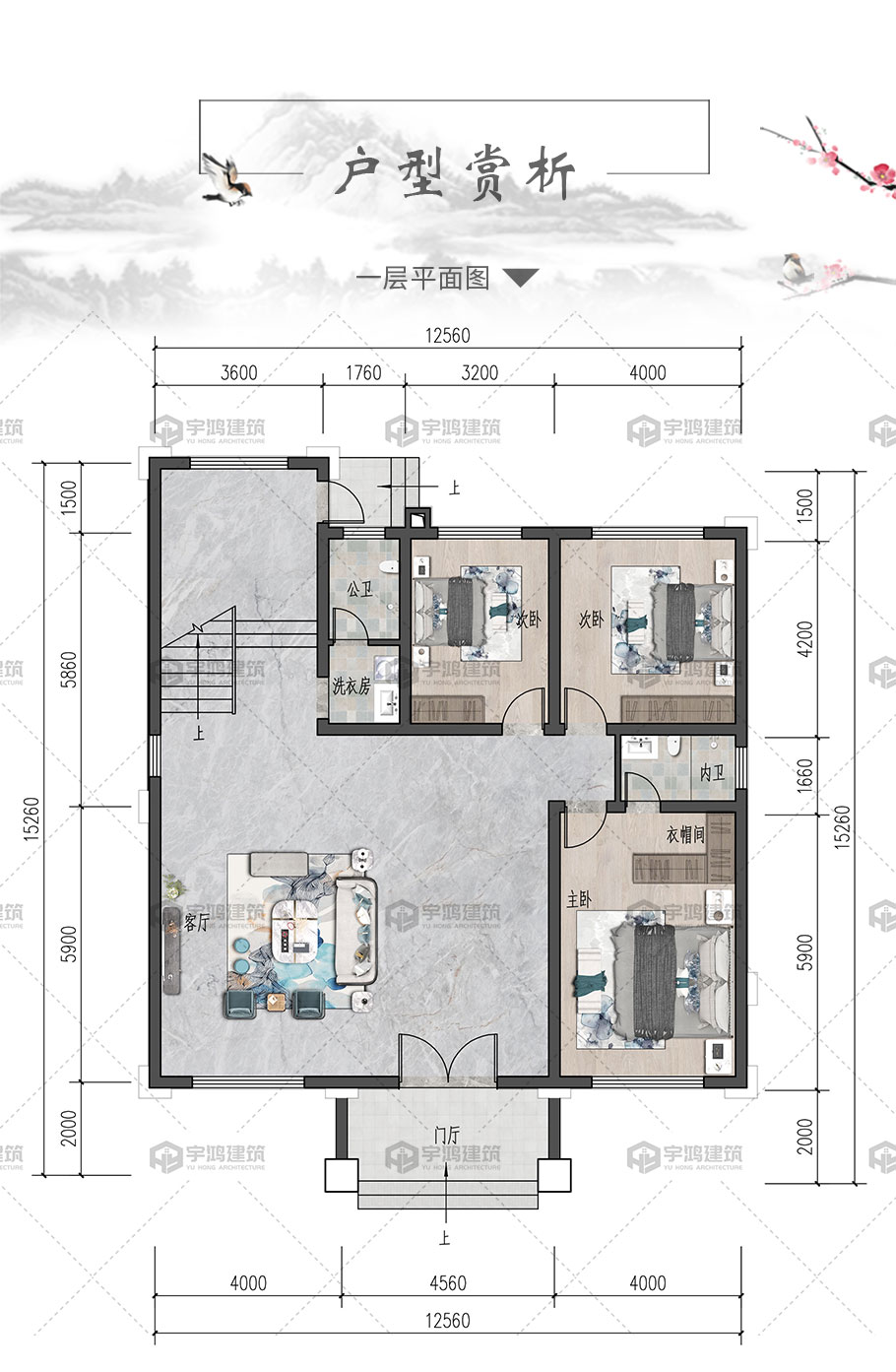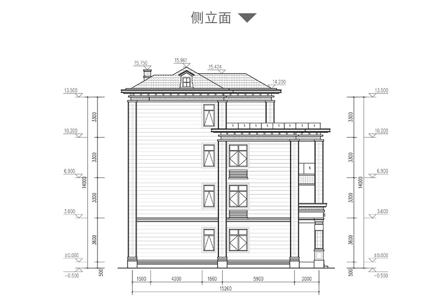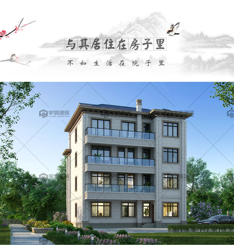 | 風格:新中式 | 層數:四層 | 結構形式:框架結構 | 圖紙編號:YH-A-4045 |