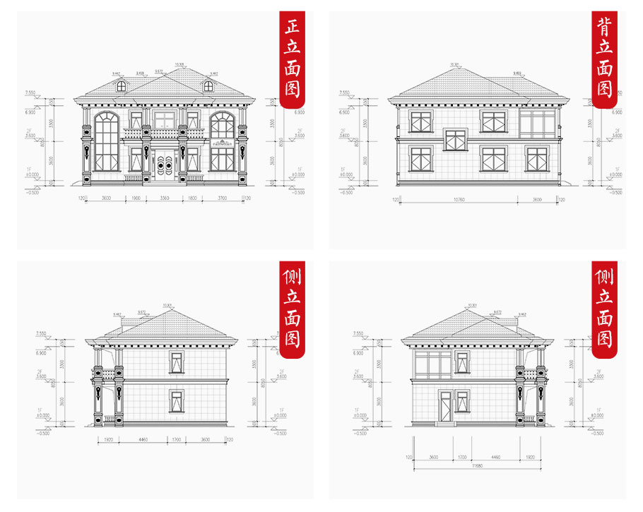 建筑平面圖:一層平面圖,二層平面圖; 建筑立面圖:東立面圖,西立面圖,南立面圖,北立面圖,剖面圖; 大樣圖:樓梯詳圖,細(xì)部大樣,門窗大樣 |