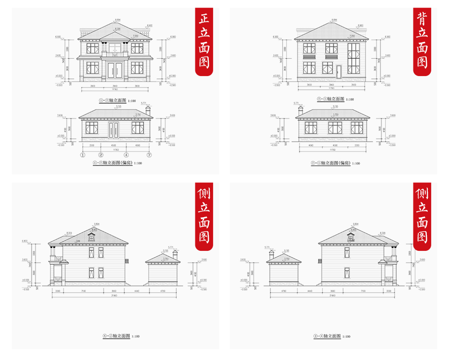 建筑平面圖:一層平面圖,二層平面圖; 建筑立面圖:東立面圖,西立面圖,南立面圖,北立面圖,剖面圖; 大樣圖:樓梯詳圖,細(xì)部大樣,門窗大樣 |