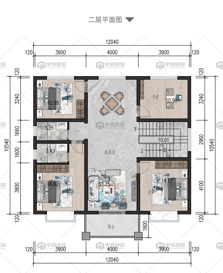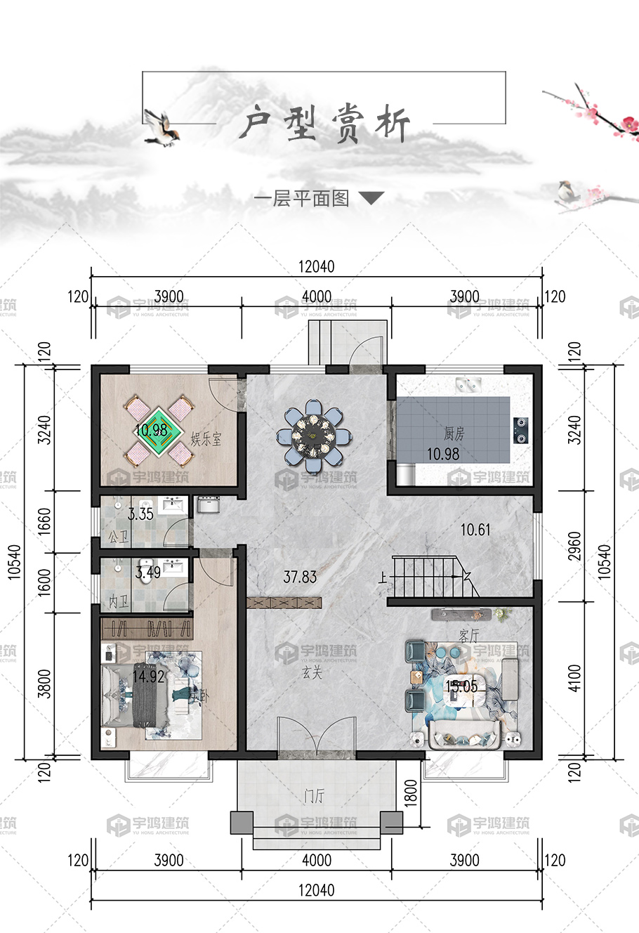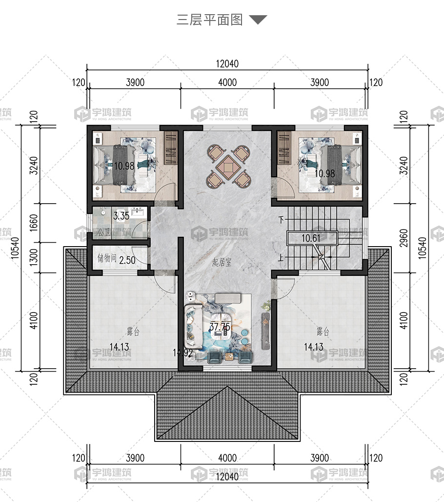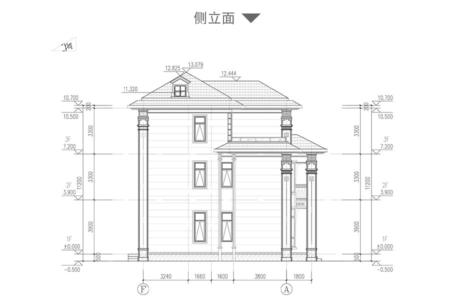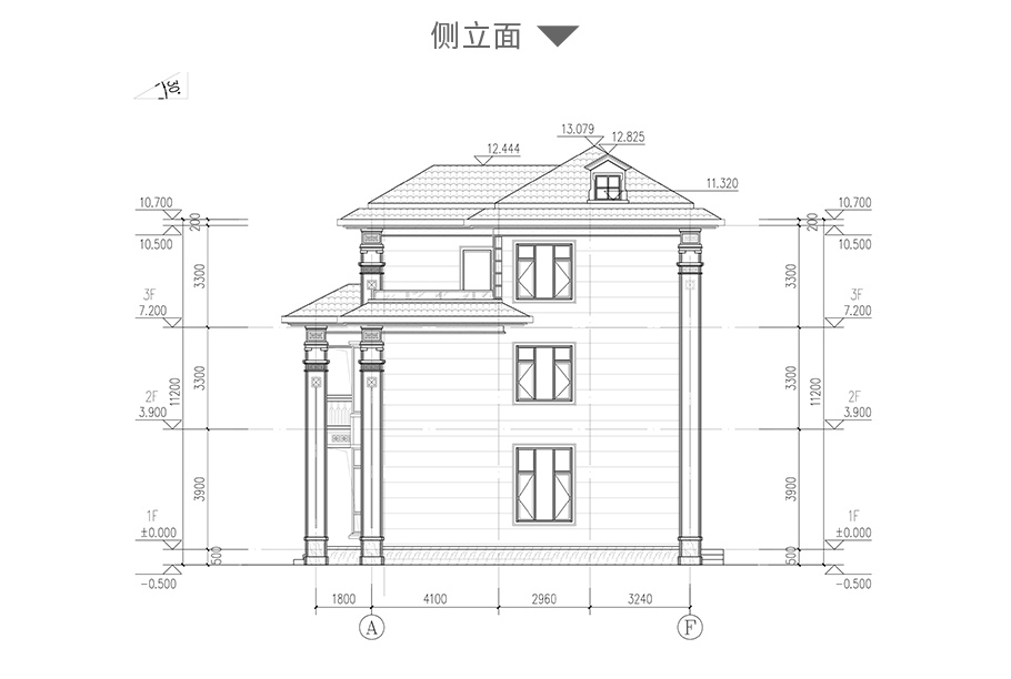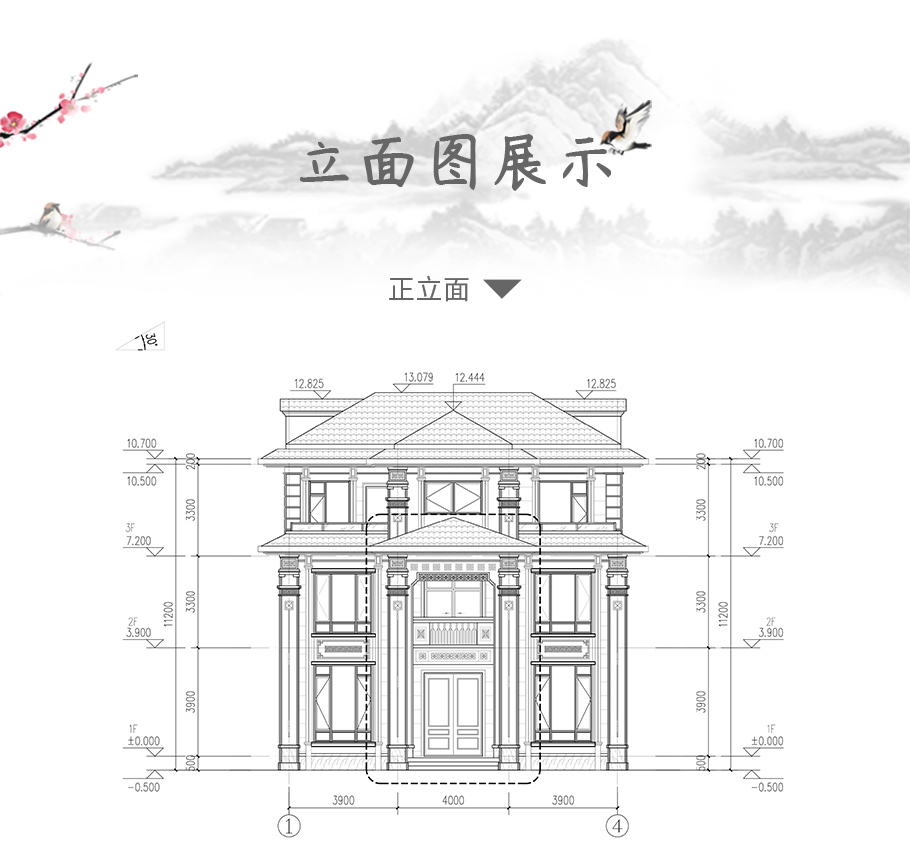 開間:12米 進深:10.5米 占地面積:135.3平方米 建筑面積:356平方米
