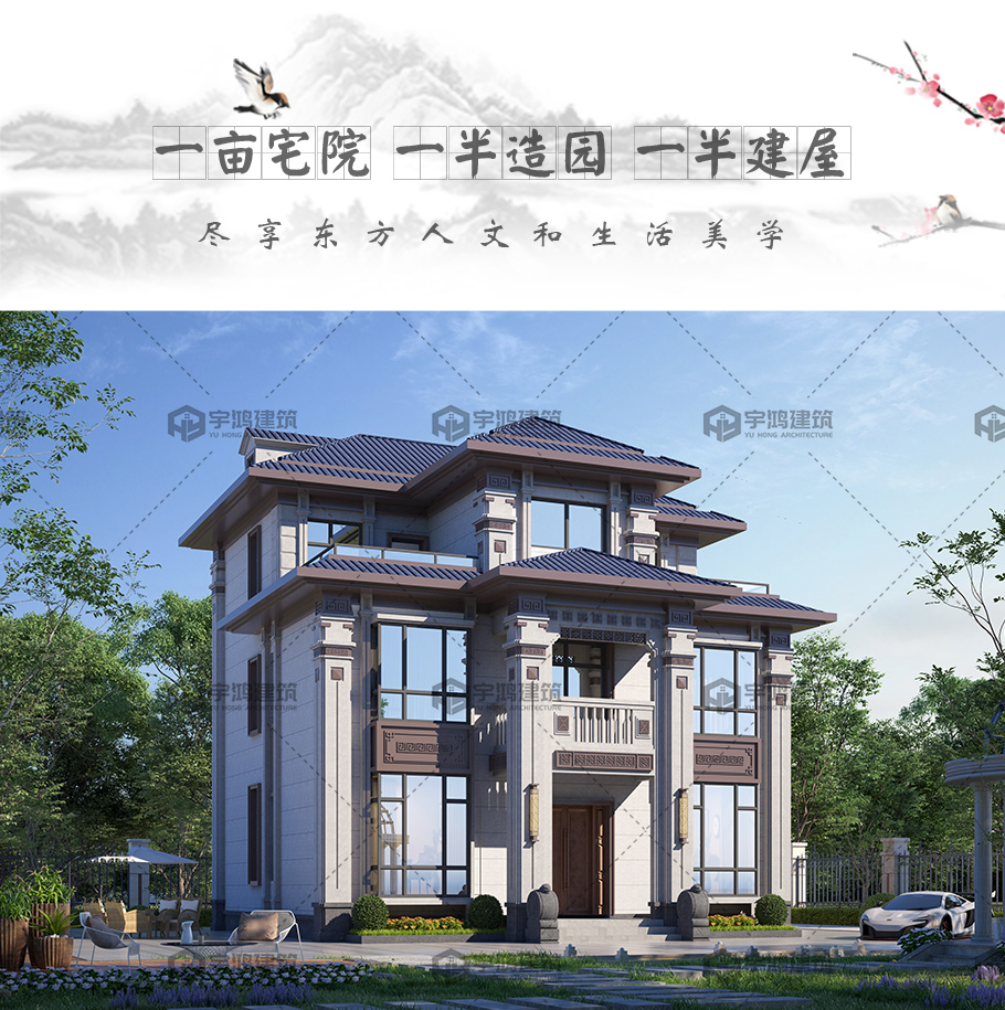 風格:新中式 層數:三層 結構形式:框架結構 圖紙編號:YH-3-6153