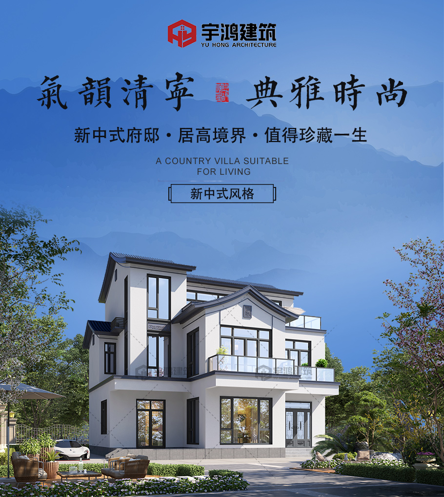 三層新中式框架結構別墅占地162平自建別墅圖紙