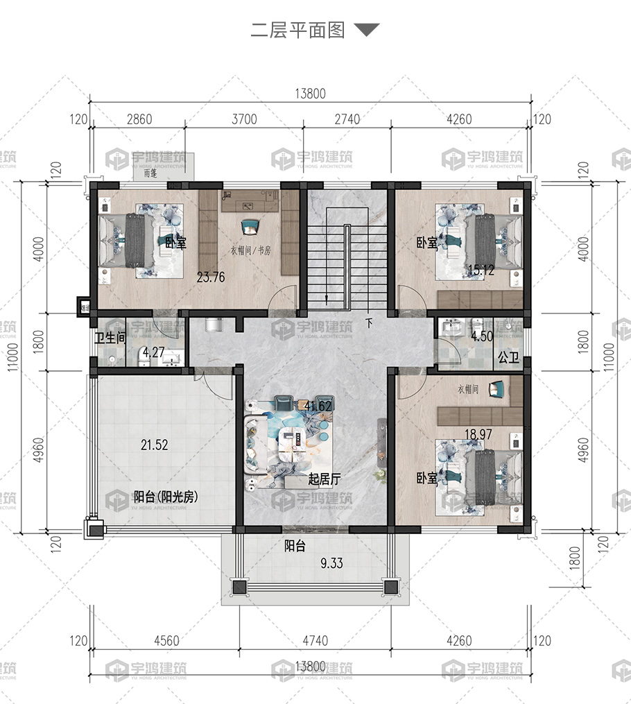 | 開間:13.8米 | 進(jìn)深:11米 | 占地面積:161.3平方米 | 建筑面積:301.6平方米 |