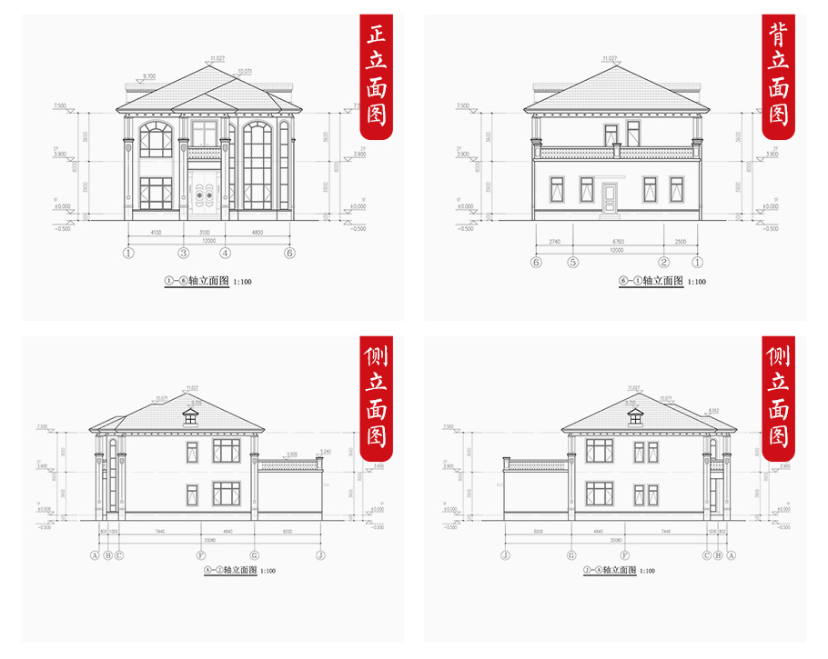 建筑平面圖:一層平面圖,二層平面圖; 建筑立面圖:東立面圖,西立面圖,南立面圖,北立面圖,剖面圖; 大樣圖:樓梯詳圖,細(xì)部大樣,門窗大樣 |