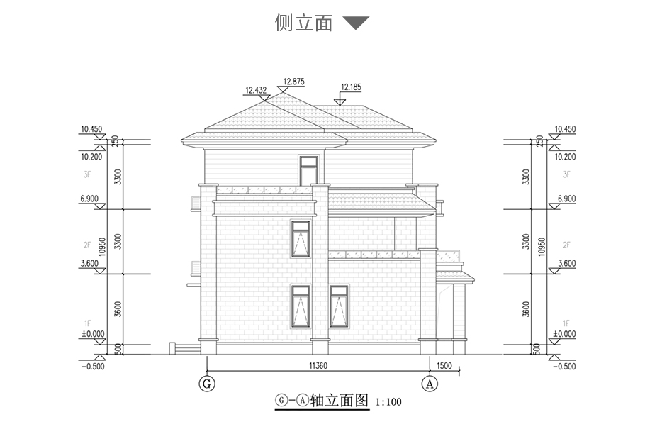 建筑平面圖:一層平面圖,二層平面圖,三層平面圖; 建筑立面圖:東立面圖,西立面圖,南立面圖,北立面圖,剖面圖; 大樣圖:樓梯詳圖,細部大樣,門窗大樣 |