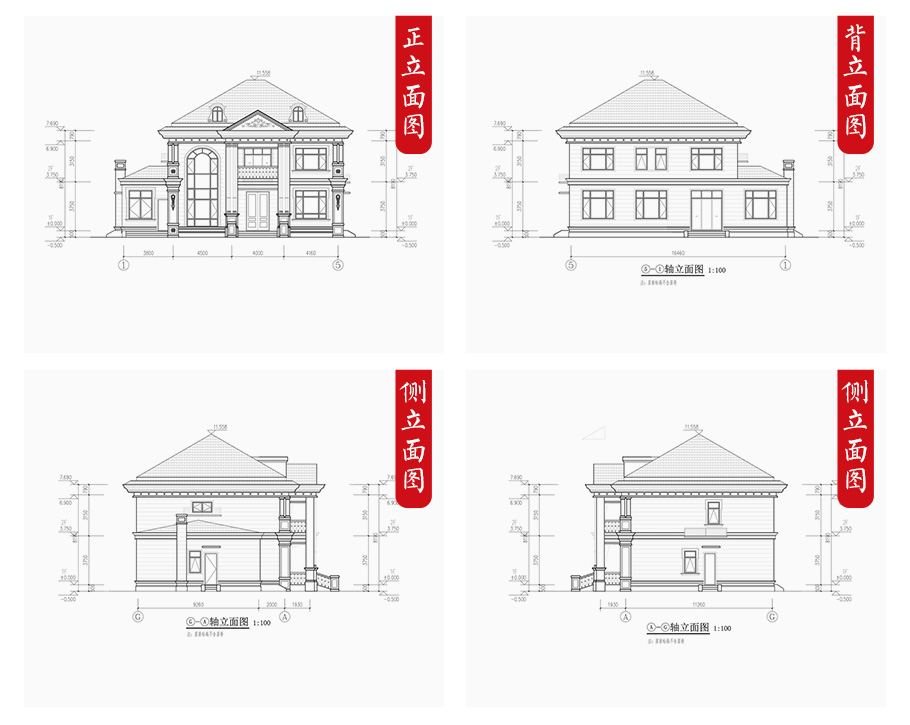 建筑平面圖:一層平面圖,二層平面圖; 建筑立面圖:東立面圖,西立面圖,南立面圖,北立面圖,剖面圖; 大樣圖:樓梯詳圖,細部大樣,門窗大樣 |
