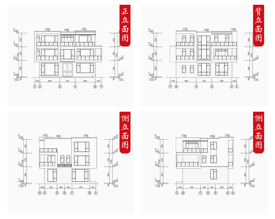| 建筑圖: | 建筑平面圖:一層平面圖,二層平面圖,三層平面圖; 建筑立面圖:東立面圖,西立面圖,南立面圖,北立面圖,剖面圖; 大樣圖:樓梯詳圖,細部大樣,門窗大樣 |