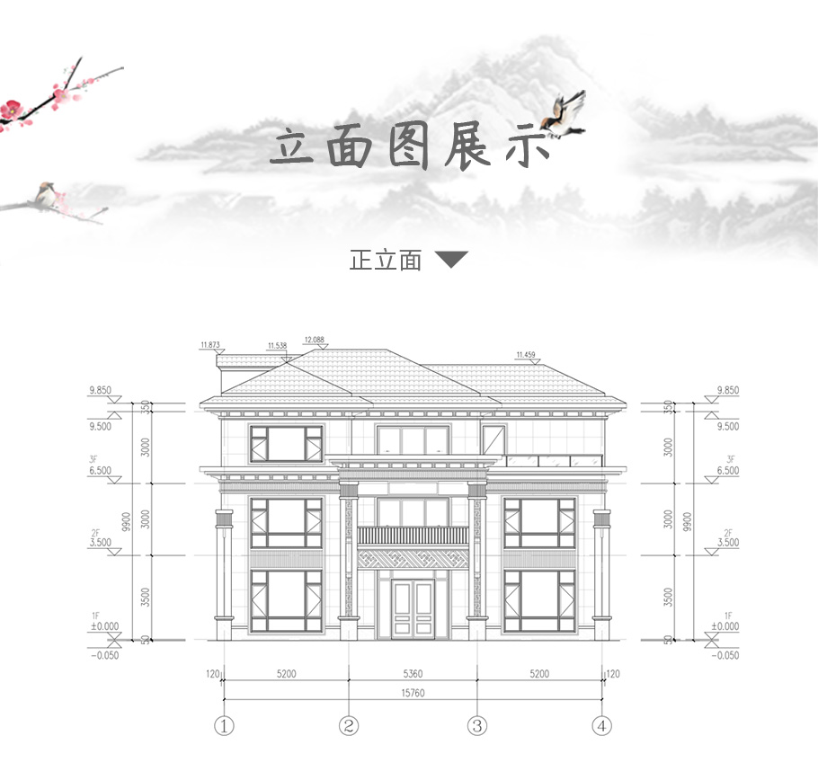 本案簡介: 磚混新中式別墅設計占地150平三層設計圖紙