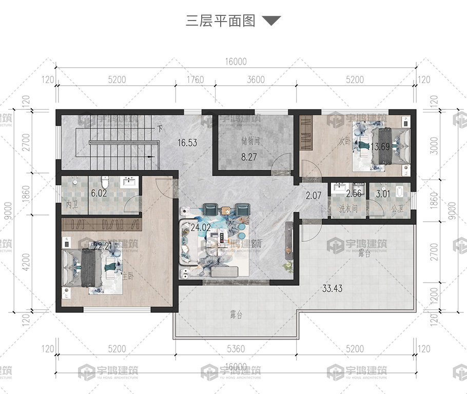 開間:16米 進深:9米 占地面積:150.5平方米 建筑面積:402平方米