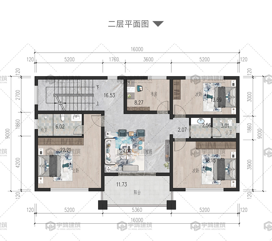 風格:新中式 層數:三層 結構形式:磚混結構 圖紙編號:YH-3-6270