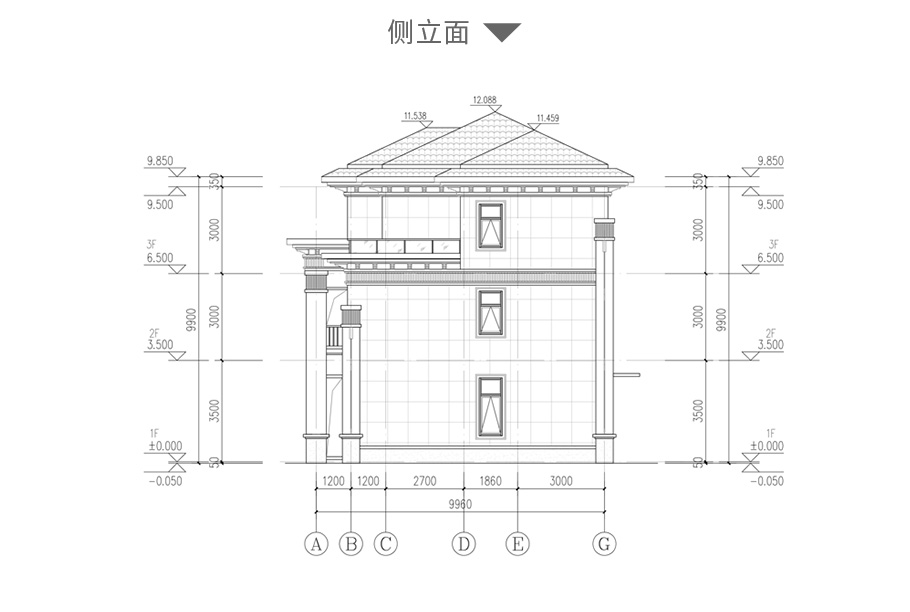 建筑圖: 建筑平面圖:一層平面圖,二層平面圖,三層平面圖; 建筑立面圖:東立面圖,西立面圖,南立面圖,北立面圖,剖面圖; 大樣圖:樓梯詳圖,細部大樣,門窗大樣