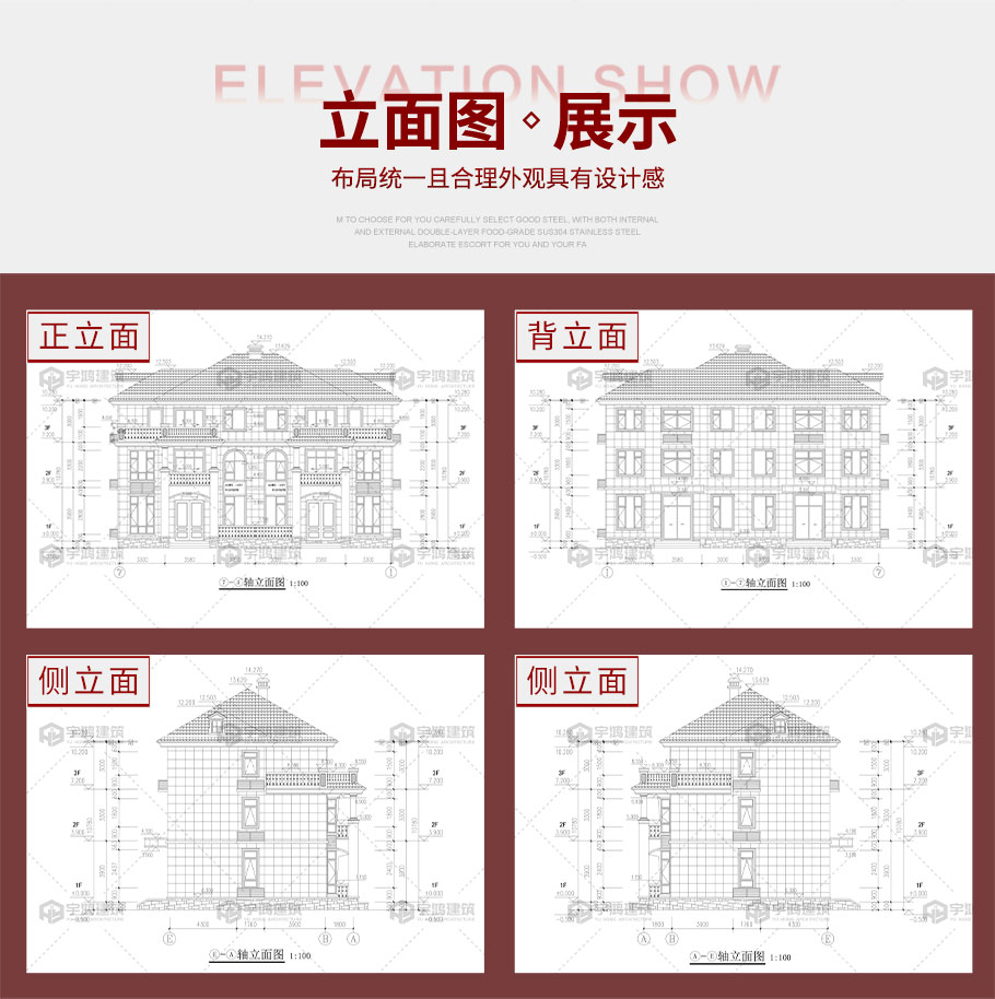 | 建筑圖: | 建筑平面圖:一層平面圖,二層平面圖,三層平面圖; 建筑立面圖:東立面圖,西立面圖,南立面圖,北立面圖,剖面圖; 大樣圖:樓梯詳圖,細部大樣,門窗大樣 |