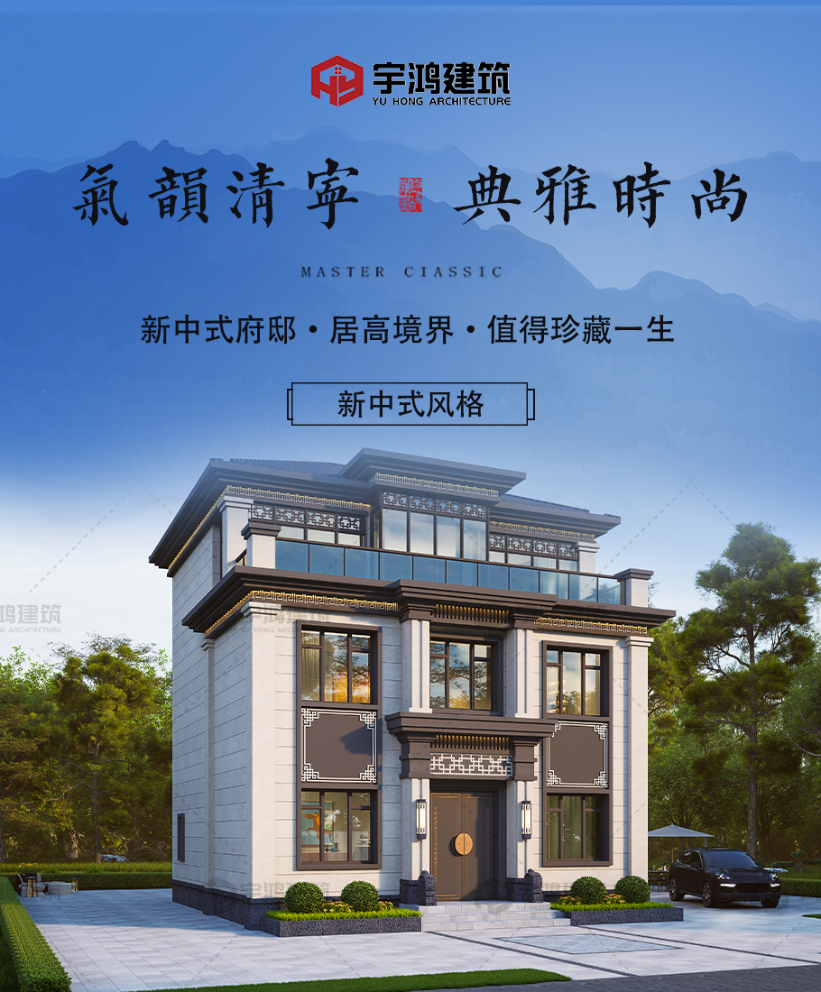 開間進(jìn)深9.66*9.85新中式三層別墅全套圖紙