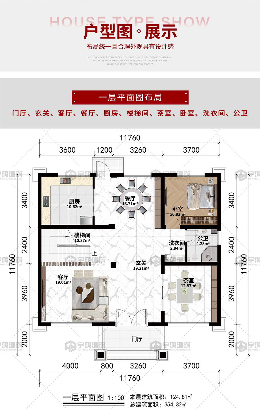 | 開(kāi)間:11.76米 | 進(jìn)深:11.76米 | 占地面積:130.25平方米 | 建筑面積:354.32平方米 |