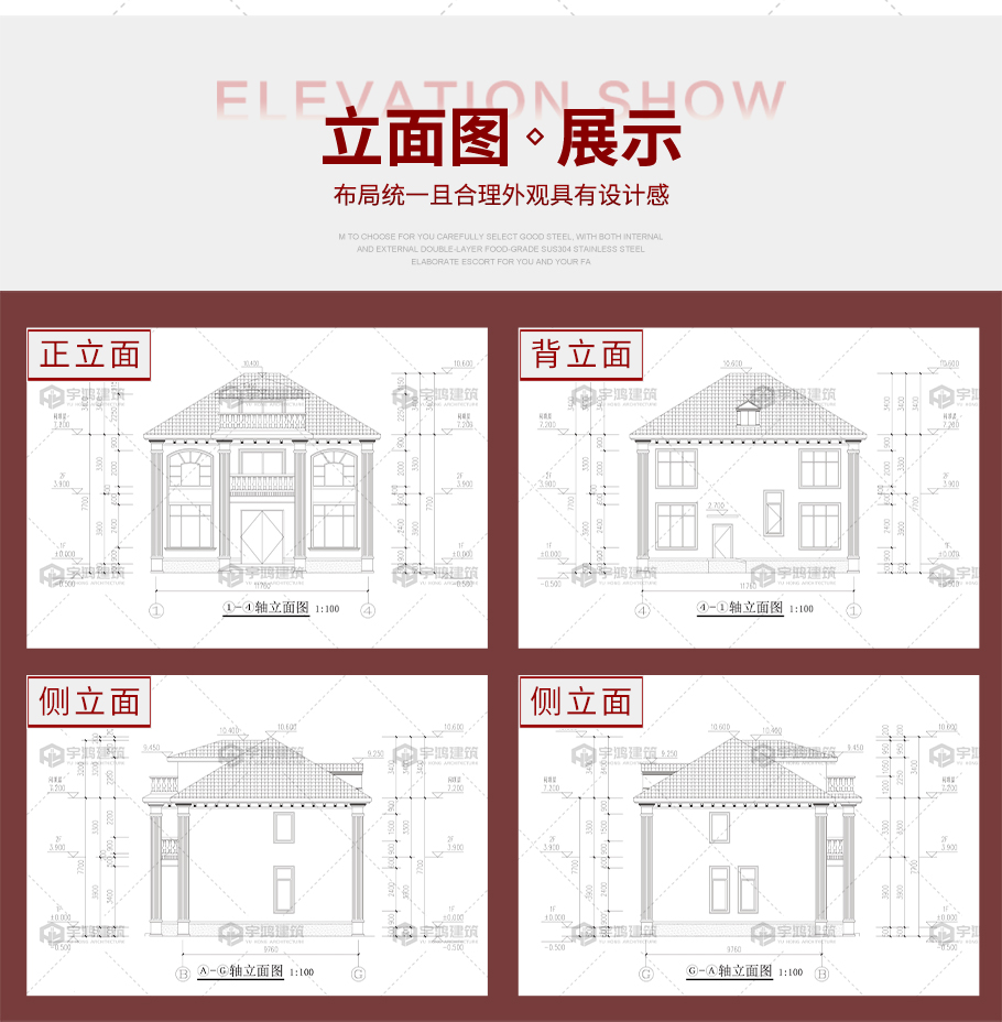 | 建筑圖: | 建筑平面圖:一層平面圖,二層平面圖; 建筑立面圖:東立面圖,西立面圖,南立面圖,北立面圖,剖面圖; 大樣圖:樓梯詳圖,細(xì)部大樣,門(mén)窗大樣 |