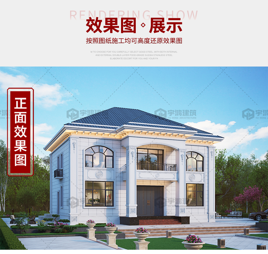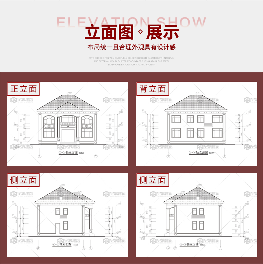 成品圖紙>開間14.26進(jìn)深13.32二層歐式別墅全套圖紙