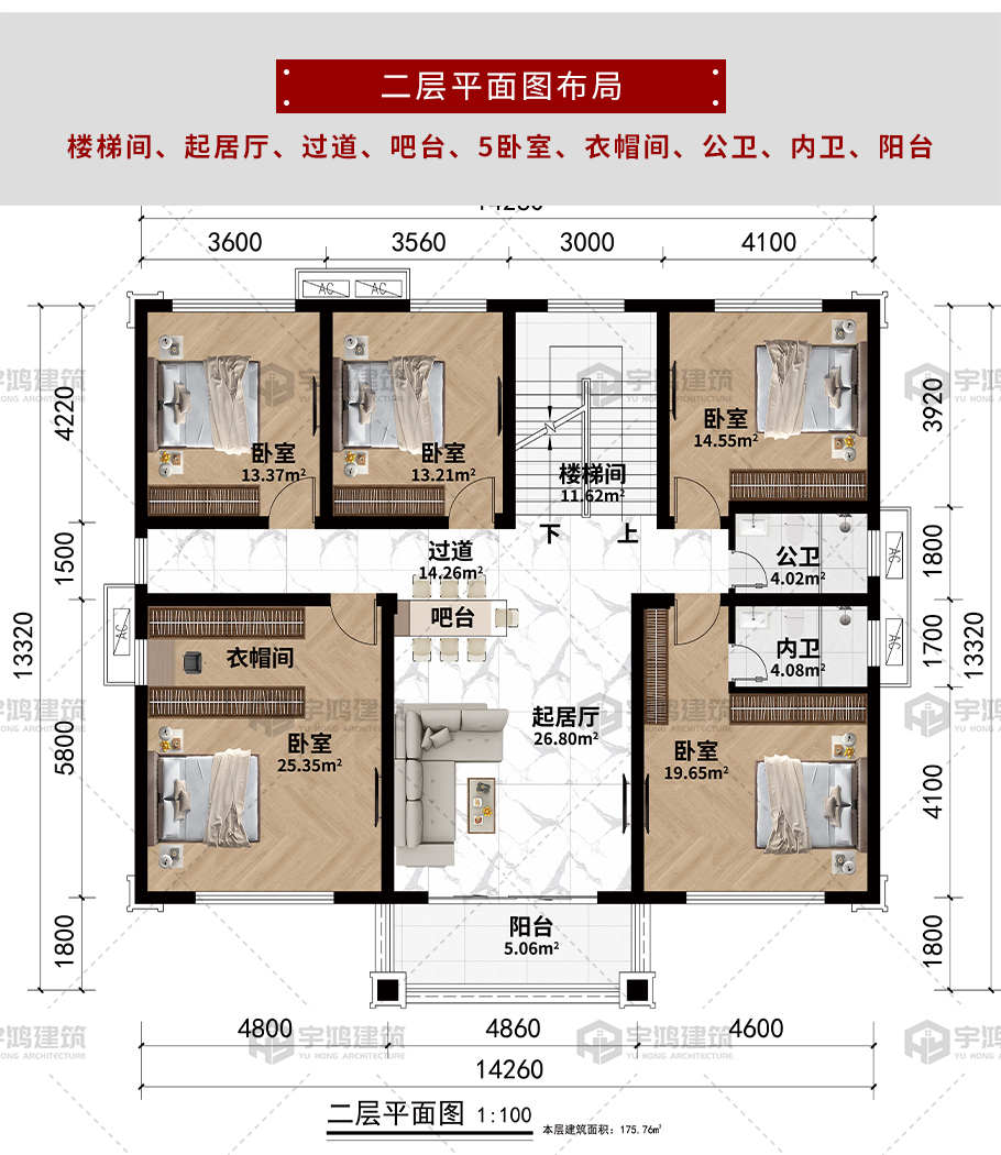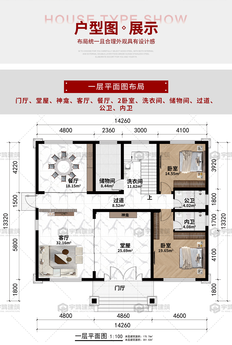 開間14.26進(jìn)深13.32二層歐式別墅全套圖紙