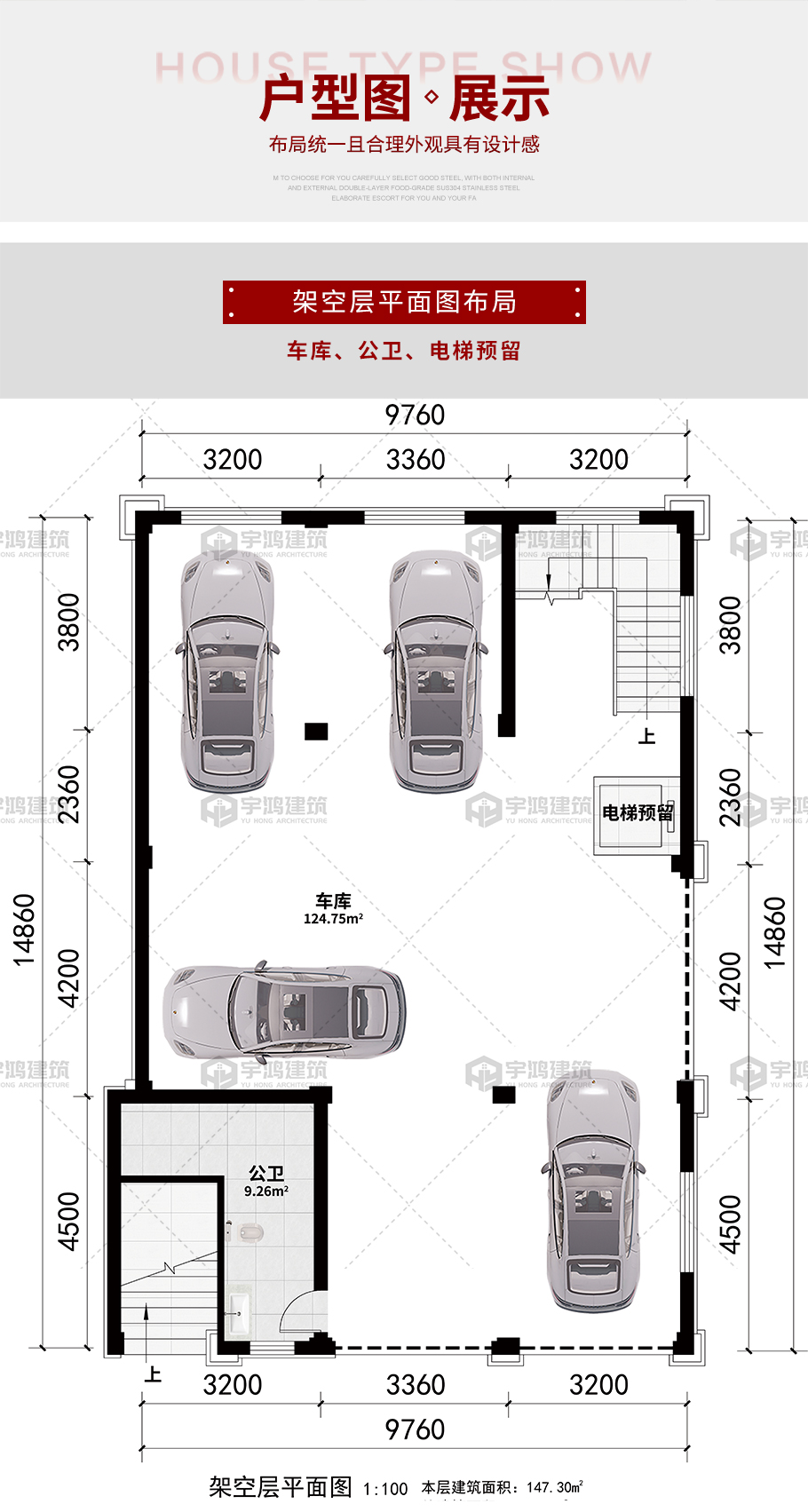 開間:9.76米 進深:14.86米 占地面積:153.37平方米 建筑面積:463.79平方米