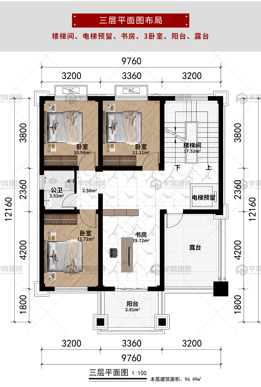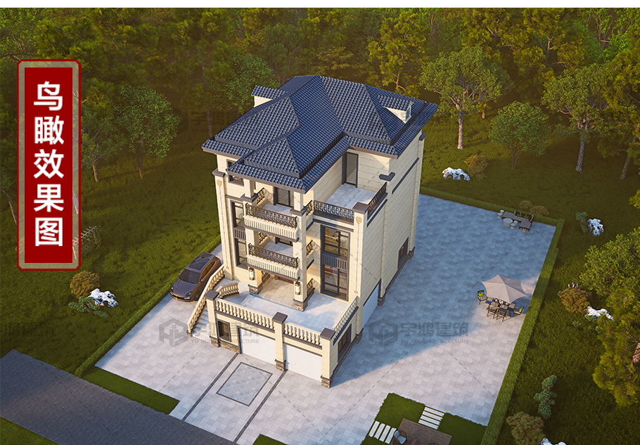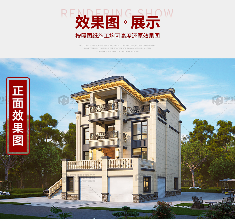 風格:新中式 層數:三層 結構形式:鋼架結構 圖紙編號:YH-3-6801